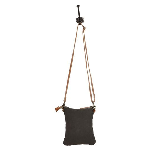80% cotton, 10% hairon goat leather, and 10% goat leather cross-body bag measuring 17cm x 19cm.